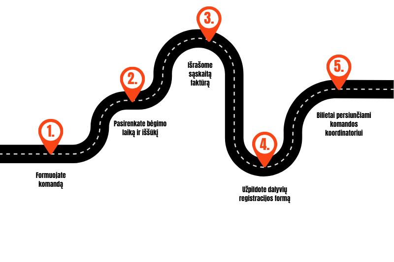 - Bilietai persiunčiami komandos koordinatoriui ateina metas ruoštis startui.
